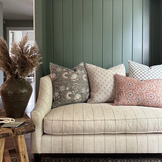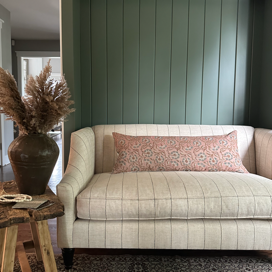 Medium Lumbar Pillow Cover - Dusty Pink Wild Floral Block Print