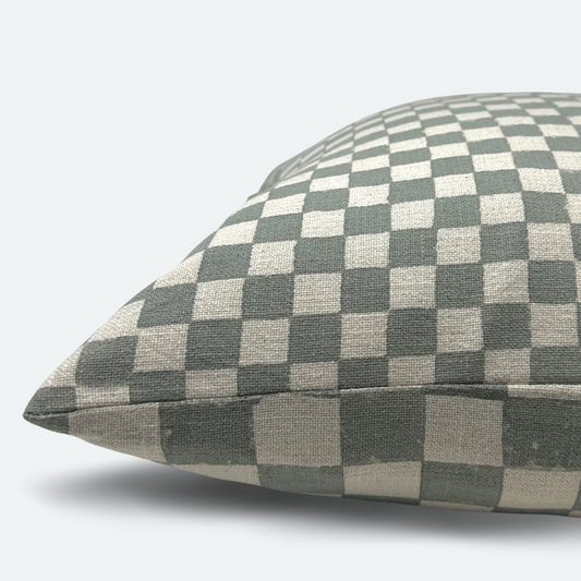 Medium Lumbar Pillow Cover - Dusty Blue Checkered Block Print | FINAL SALE