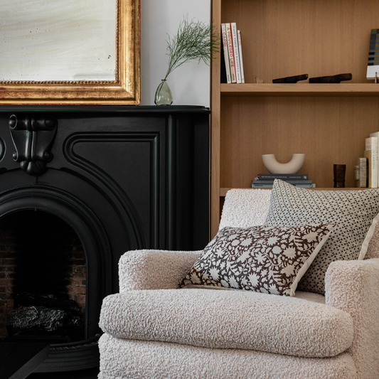 Square Pillow Cover - Cocoa Floral Vine Block Print