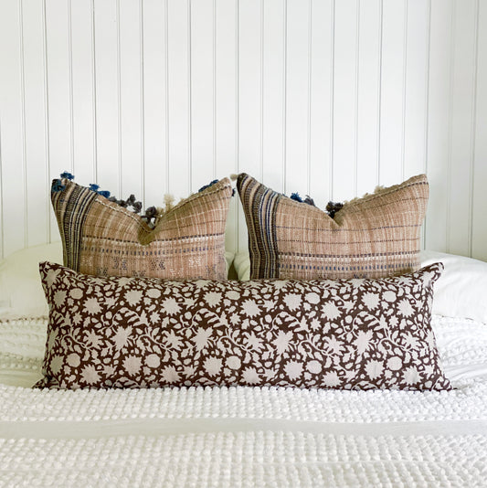 Medium Lumbar Pillow Cover - Cocoa Floral Vine Block Print