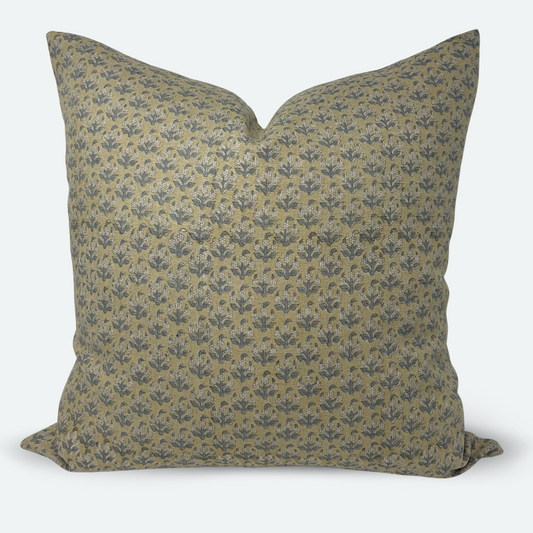 Square Pillow Cover - Dusty Blue Floral Block Print