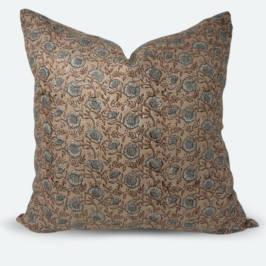 Square Pillow Cover - Dusty Pink Garden Block Print