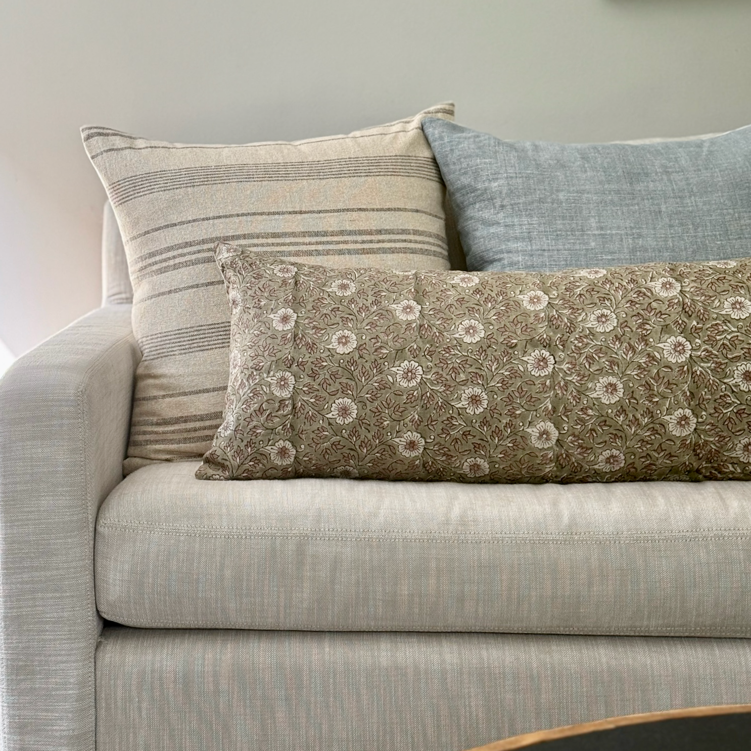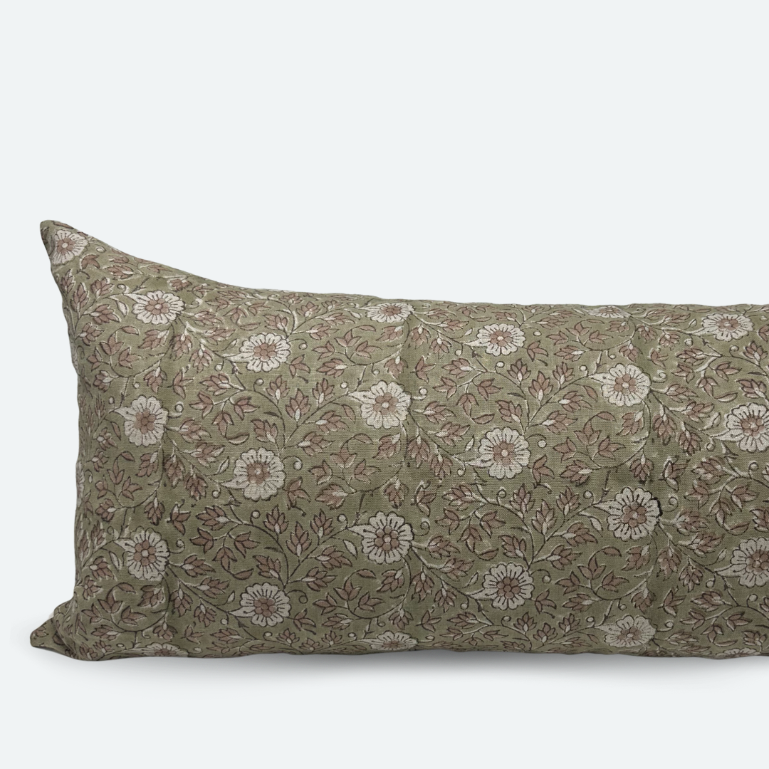 Large Lumbar Pillow Cover - Olive Floral Block Print