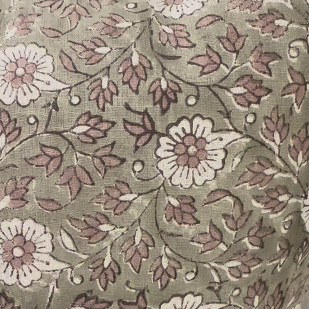 Hand block printed by a family of artisans in a remote village in India, every yard takes 2 days to finish and the slow pace of this craft inspires us to remember that just like our homes, the fabrics are perfectly imperfect.