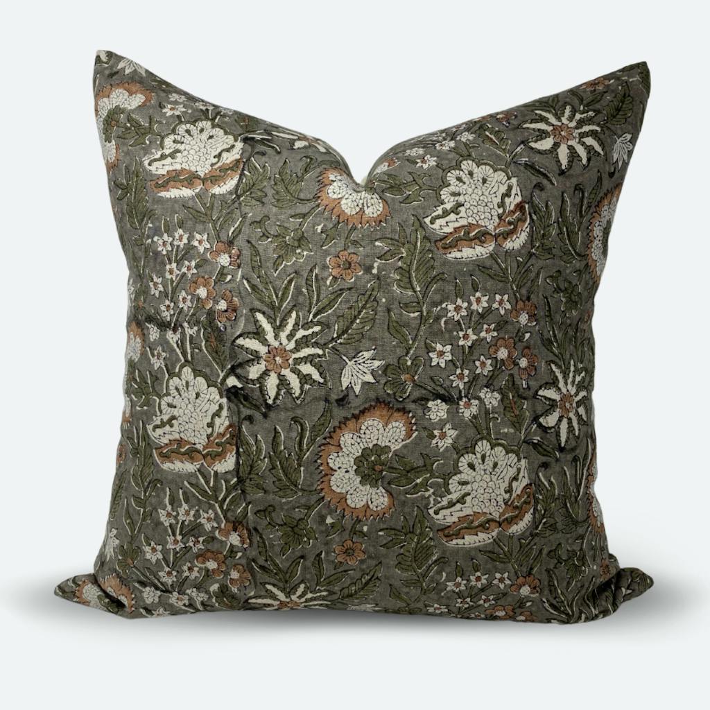 Medium Lumbar Pillow Cover - Heirloom Floral Block Print