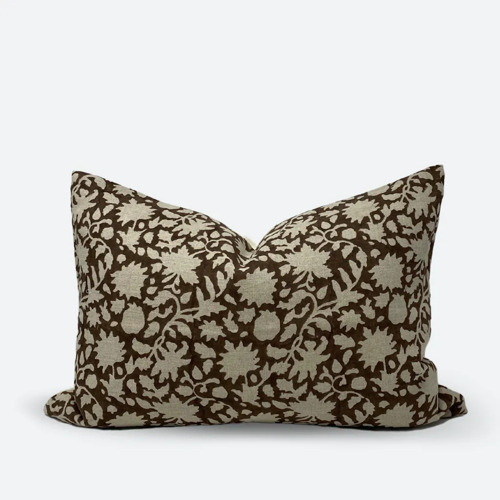 Square Pillow Cover - Cocoa Floral Vine Block Print